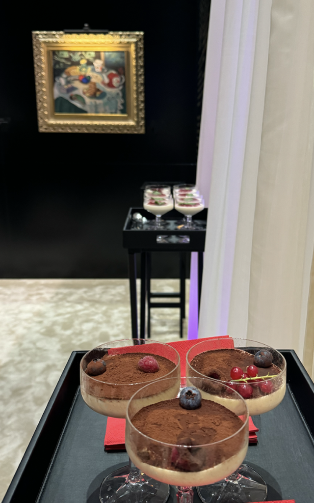 Zum Abschluss gab es unsere Signature Desserts, die neben den Kunstwerken präsentiert wurden.