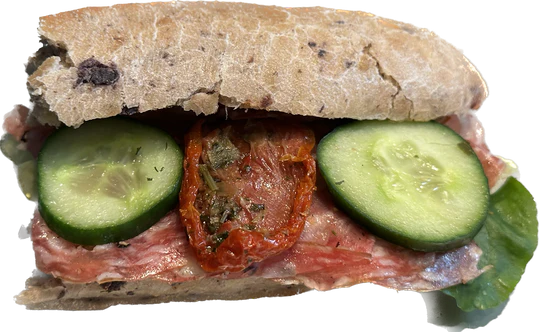 Olivenbrot mit Ital. Salami und getrocknete Tomate