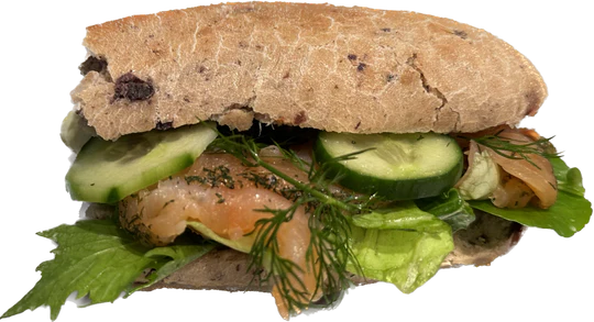 Olivenbrot mit Graved Lachs, Gurken und Dill