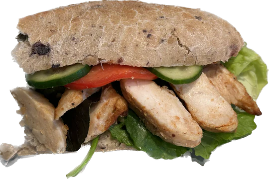 Olivenbrot mit Hühnerstrips und Antipasti