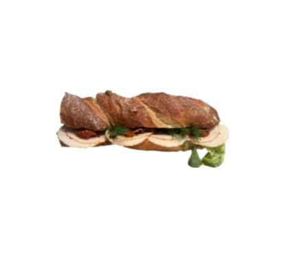 Rustico Baguette mit Pute, saures Gürkchen, Paprika
