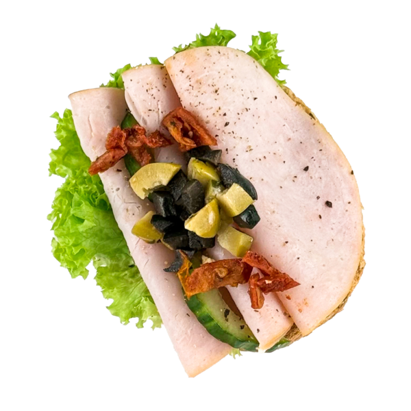 Halbe Brötchen mit Pute und Antipasti
