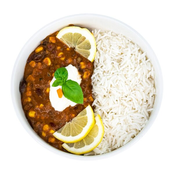 Rindfleisch mit Chili con Carne mit Reis