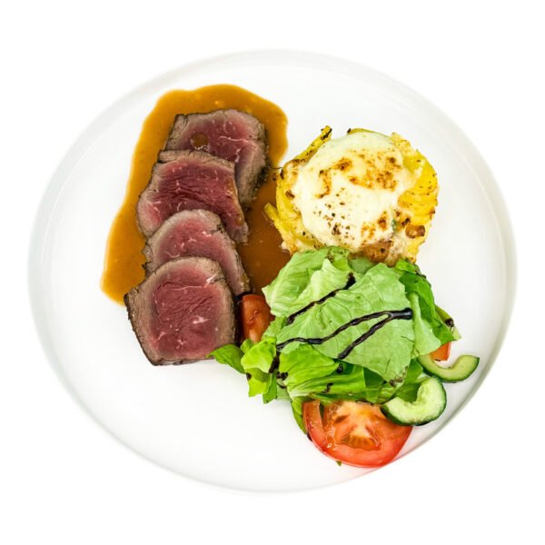Roastbeef, Kartoffelgratin und Salat
