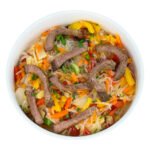 Aus dem Wog: Rinderstreifen mit Asiagemüse und Glasnudeln
