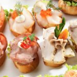 diverse gemischte Canapes mit Schinken, Käse, Salami, Pute, Streichkäse, Serrano und weiteren Sorten.
