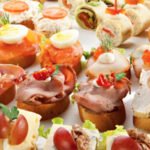 diverse gemischte Canapes mit Schinken, Käse, Salami, Pute, Streichkäse, Serrano und weiteren Sorten.